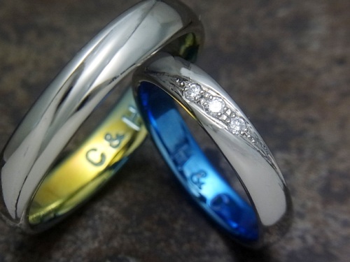 ブラックチタンと内側だけブルーにした場合:ブルー¥6600+ブラック剥き取りオプション¥13,200税込み ダイヤは大きさと数によりお見積りします