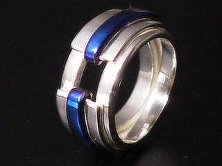 [ game ] 素材:: シルバー2重+チタン(青いハネ部分) 青いtittanをシルバーに載せたリング 文字は青いハネ部分にお入れできます